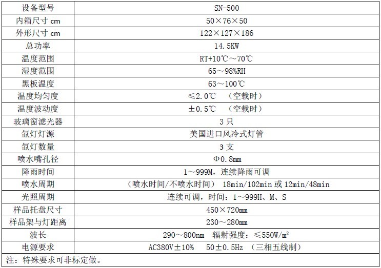 本產品嚴格按GB/T16422.2-99的技術參數設計制造.同時符合(GB/T1865-2009、GB/T9344-88、ASTMG155、GB/T16422.2、GB/T2423.24-1995、ISO10SB02/B04、SAEJ2527、SAEJ2412)等相關標準